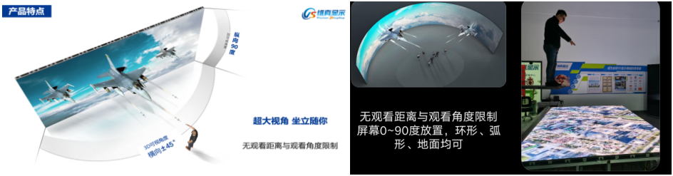 4、最大視角可達(dá)120度,環(huán)形、弧形、地面均可,且無(wú)觀看距離限制。