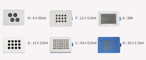 配置9種模式,可搭配多種試管,主機自動識別模塊種類。